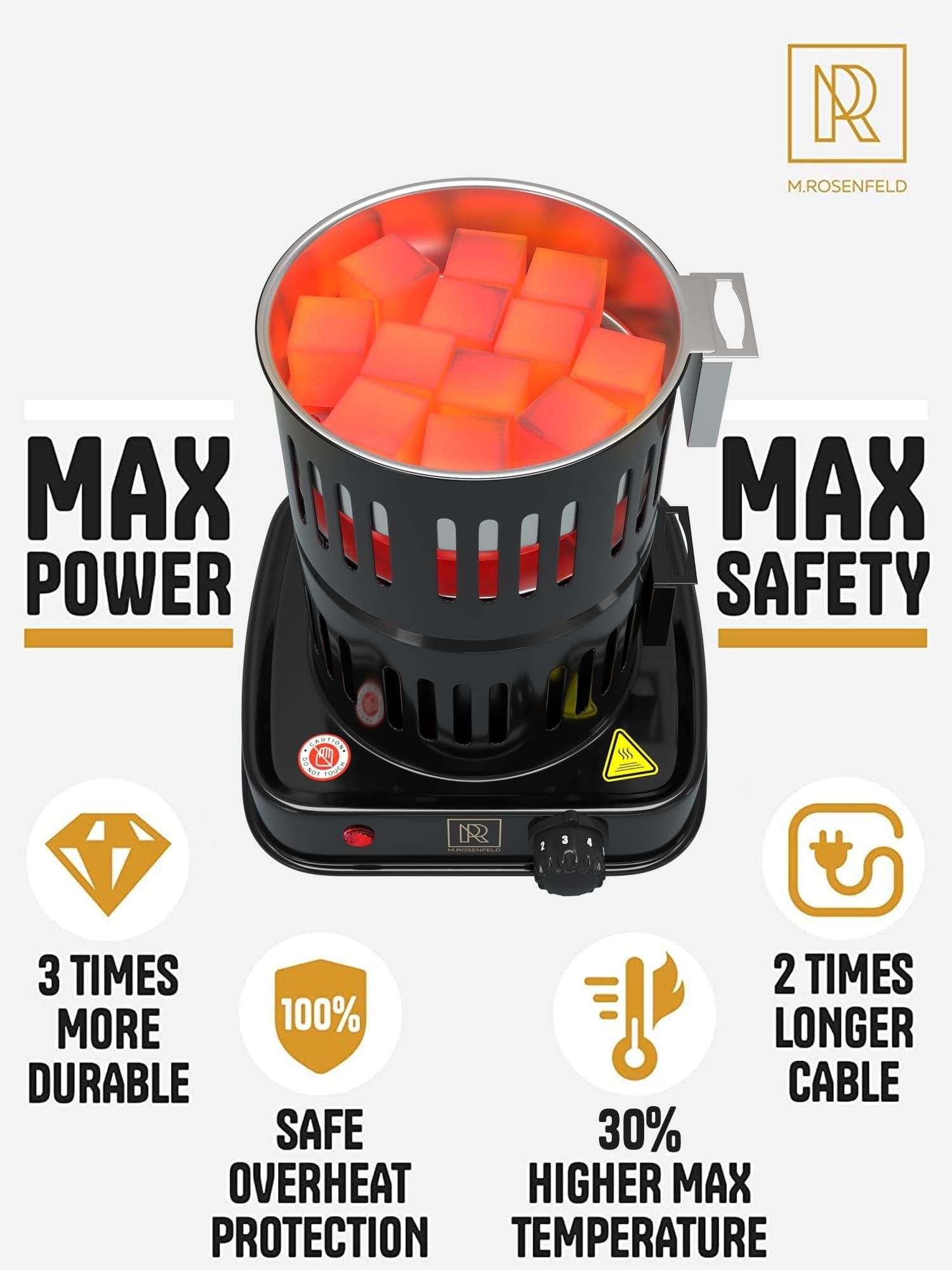 3.easy to use & safe - plug in & turn on the heat switch to 5. after 6 min the coals are ready, turn the switch off and remove the coals. safe for indoor or outdoor coal burner stove electric burner.