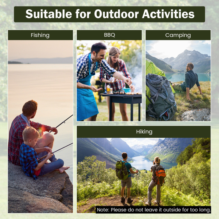 -Weights only 3.5 kg, this folding chair is suitable for outdoor activities.