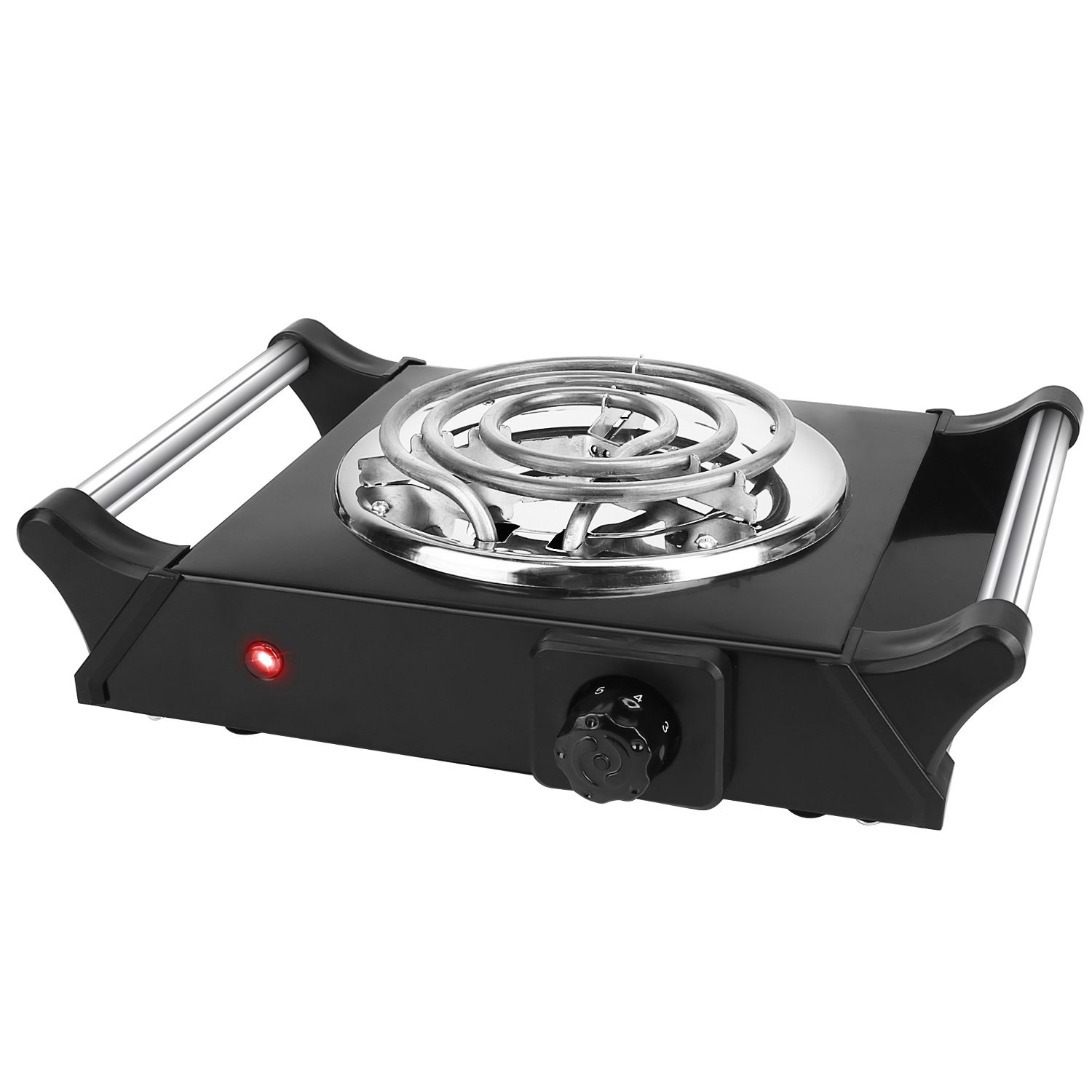 Home > 1000W Electric Single Burner Portable Coil Heating Hot Plate Stove Countertop RV Hotplate with 5 Temperature Adjustments Portable Handles