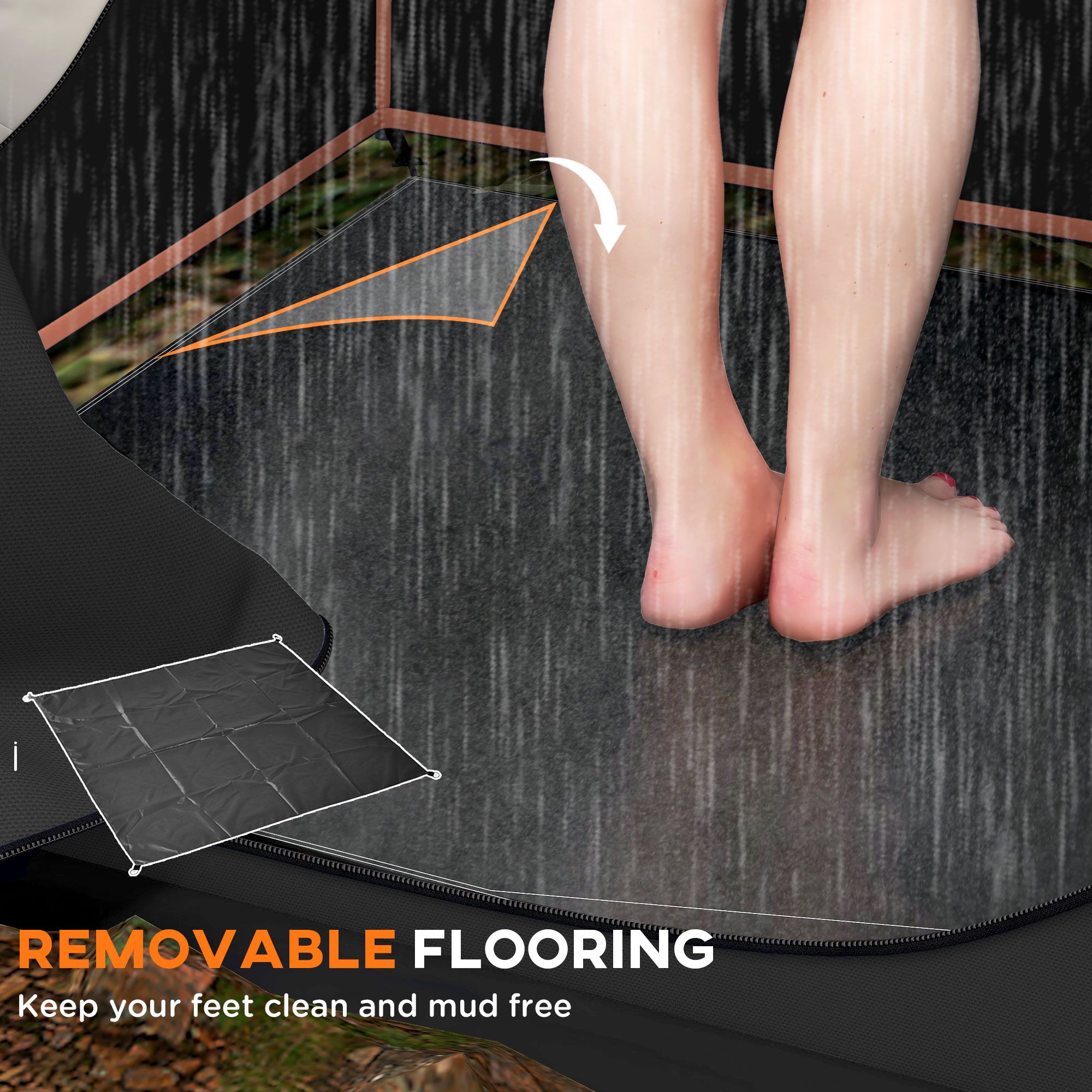 Protective Shelter: Made with a UPF25-39 fabric that can block out up to 90% of the sun's harmful rays, PU800mm quick-drying materials also keep the outdoor shower tent dry. Removable flooring keeps you clean and will not let the water accumulate when you shower.