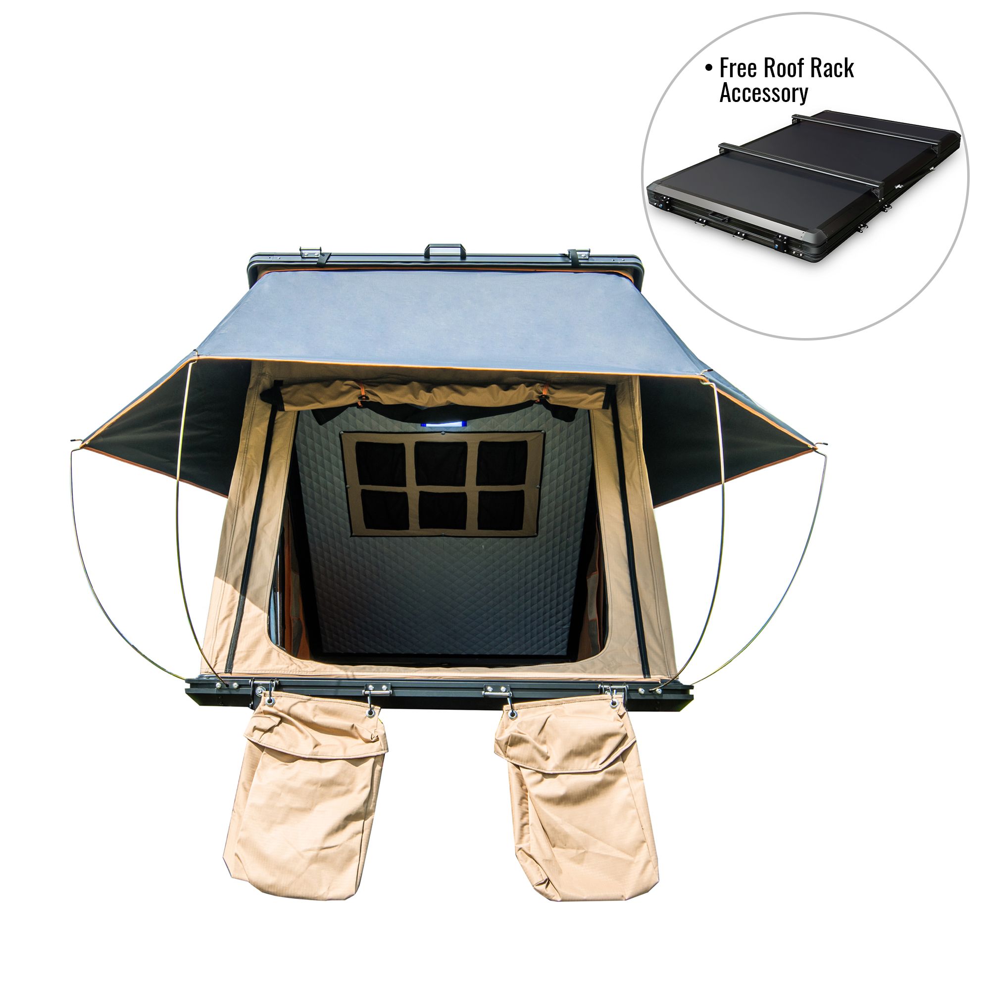 Home > Trustmade Triangle Aluminium Black Hard Shell Beige Rooftop Tent Scout MAX Series ; With Two Rainflies of Different Colors